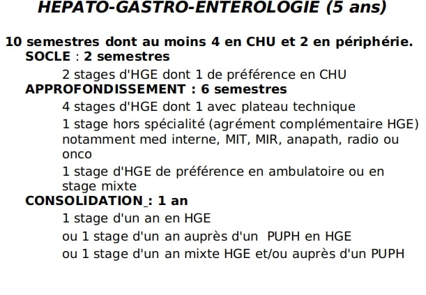 - Activité de l’interne : HDJ ou consultation ou endoscopie le matin puis aide dans le service l’après-midi + téléphone d’avis ; possibilité de suivre le chef d’astreinte pour les endoscopies d’urgence ; pas d’astreintes de service le week-end ; pour les plus vieux semestres possibilité d’avoir ses propres plages de consultation et de bloc