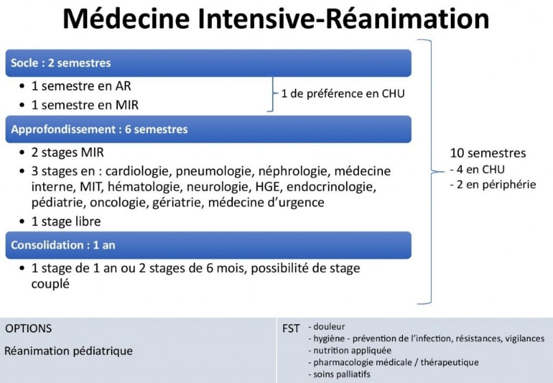 Comme mentionner ci-dessus, l’interne a le choix d’orienter sa maquette soit vers une spécialité précise (Maladies infectieuses, Néphrologie, …) soit d’avoir un parcours polyvalent avec des stages médicaux systématiquement différents.